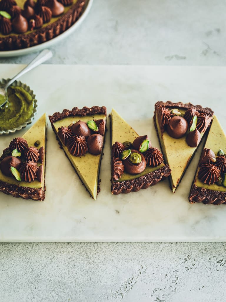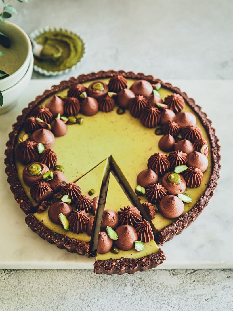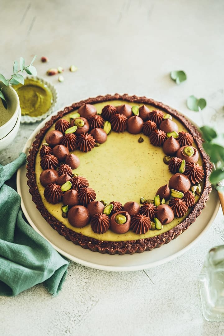 Tarte à la pistache et au chocolat – sans cuisson