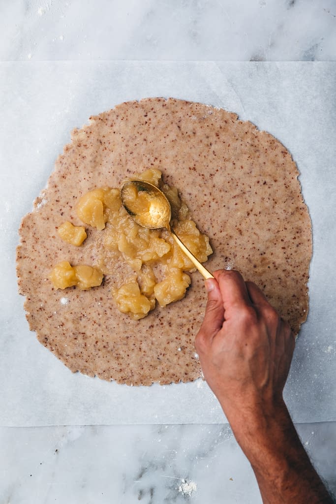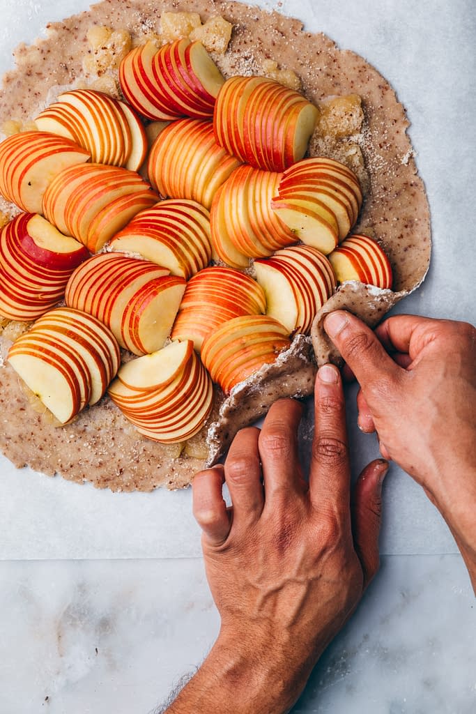 - – Repliez les bords de la pâte sur les pommes.